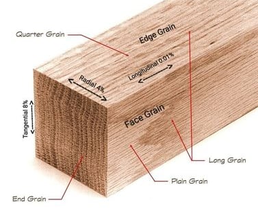 We focus primarily on edge grain and end grain products. As such we are often asked what the difference is between them. There are 3 different types of wood grain. End, Edge, and Face. The diagram below shows the difference between them.